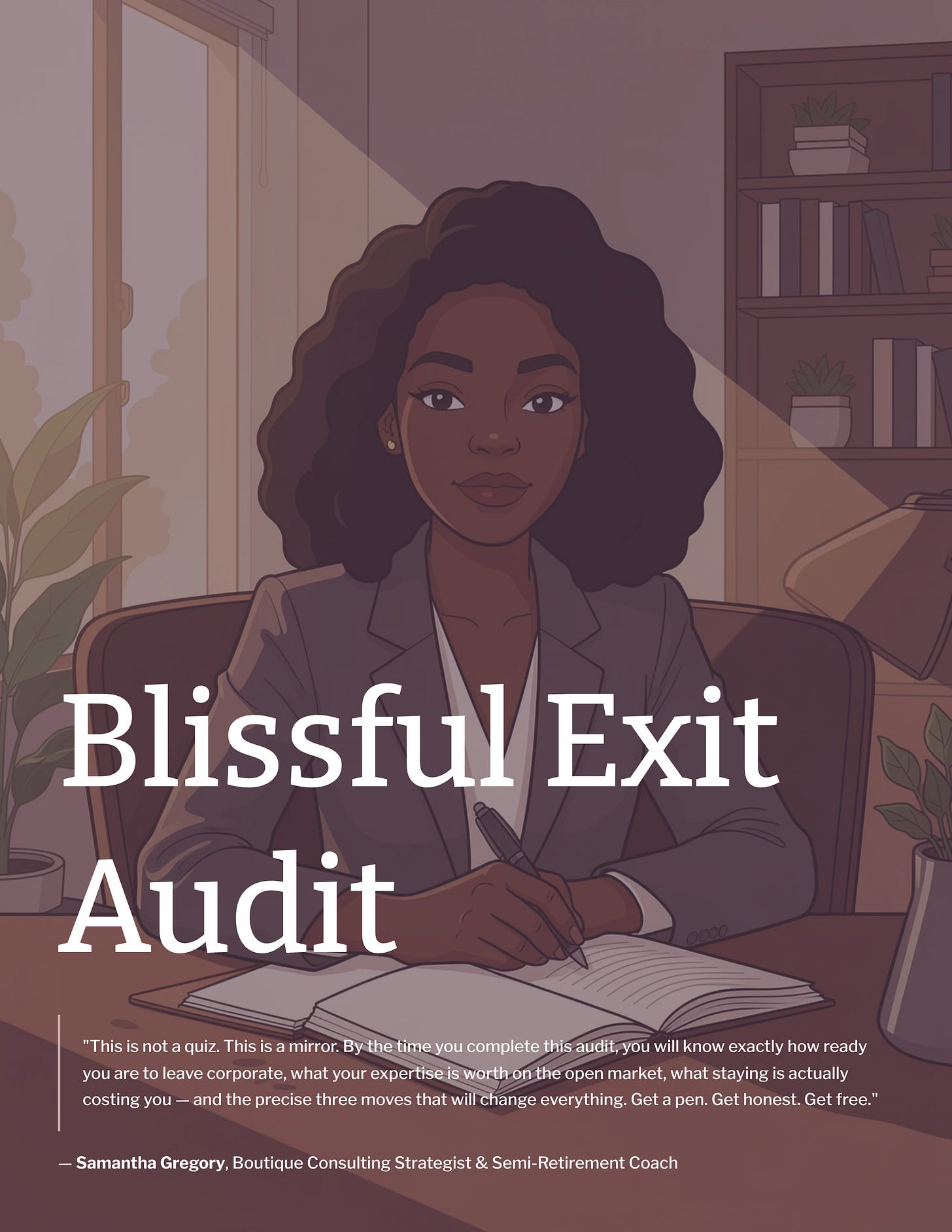 This audit was created specifically for you if you are a Black woman in a Director level role or above, you are 50 or older, you have been thinking about leaving corporate for longer than you care to admit, you are tired of performing for a company that has already decided your ceiling, your body has been sending you signals that something needs to change, and you are ready to stop dreaming about a different life and start building one.
